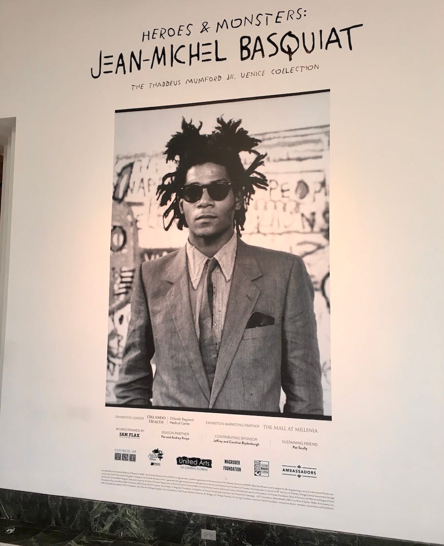 I forgot it was Jean-Michel Basquiat’s birthday. I had been working on a book about him for nearly two years — reading about him; watching documentaries about him; tracking down a little-known painting in Dallas; flying to the Orlando Museum of Art to see an exhibit that was later raided by the F.B.I. (the artworks were fake); flying cross-country to visit his New York City haunts; going to his Los Angeles haunts; attending panel discussions to listen to Jeffrey Deitch, Kenny Scharf, Larry Gagosian, Fred Hoffman, Tamra Davis, Lee Quinones, Toxic, and the Basquiat sisters talk about Jean-Michel; spending hours with his paintings at The Broad museum in L.A.; reading books Jean-Michel read; listening to music he loved — and I still didn’t remember. It wasn’t good. But somehow, by fate or by luck, I ended up at the Jean-Michel Basquiat: King Pleasure exhibit, in Los Angeles, on his birthday, December 22. If he had kept living, Jean-Michel would have been sixty-three years old.