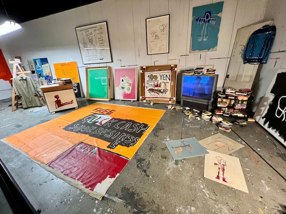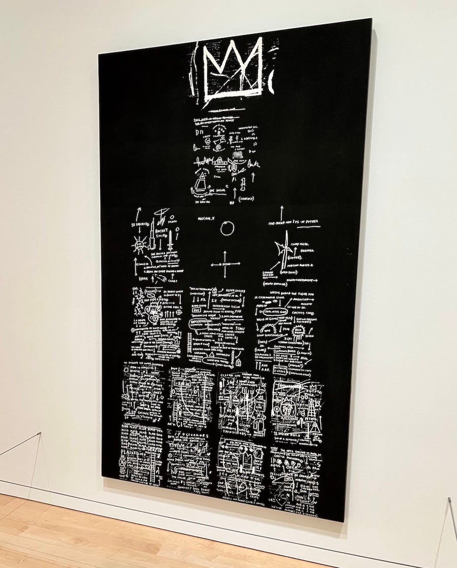 It was my tenth visit to the exhibit — technically my eleventh since I went to the original show, in 2022, in New York City. I went to King Pleasure all those times because it was a rare, fleeting opportunity to collect a lot of information that would otherwise be impossible to find — as far as I knew, there was no Basquiat archive, open to researchers, where I could spend months, even years, looking into Jean-Michel’s life and work. To get around that, I had King Pleasure, where I could go as often as I wanted for as long as I wanted as long as I coughed up the cash for a ticket.